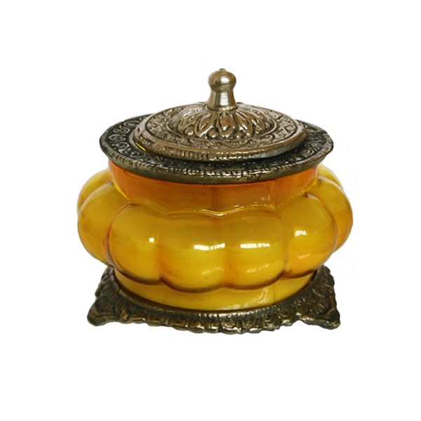 Винтажное оформление металлической крышки и подставки, а также фигурное стекло будет отлично гармонировать практически с любым интерьером.
