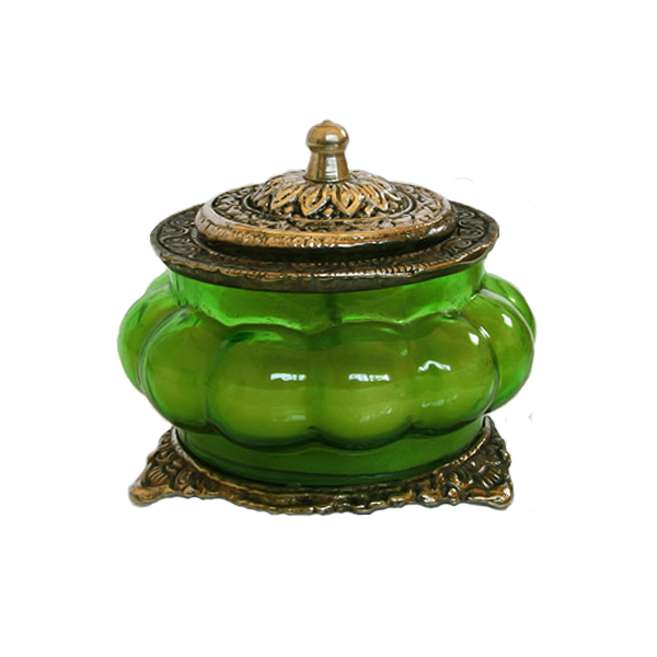 Винтажное оформление металлической крышки и подставки, а также фигурное стекло будет отлично гармонировать практически с любым интерьером.