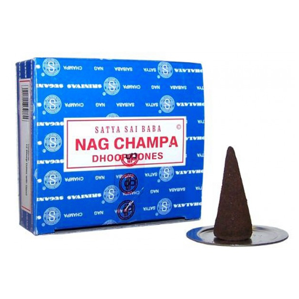 Купите индийское благовоние "Саи Баба Наг Чампа" в форме конусов - высококачественное, натуральное, с дивным ароматом, способное защитить от недоброжелательства и гармонизировать пространство.