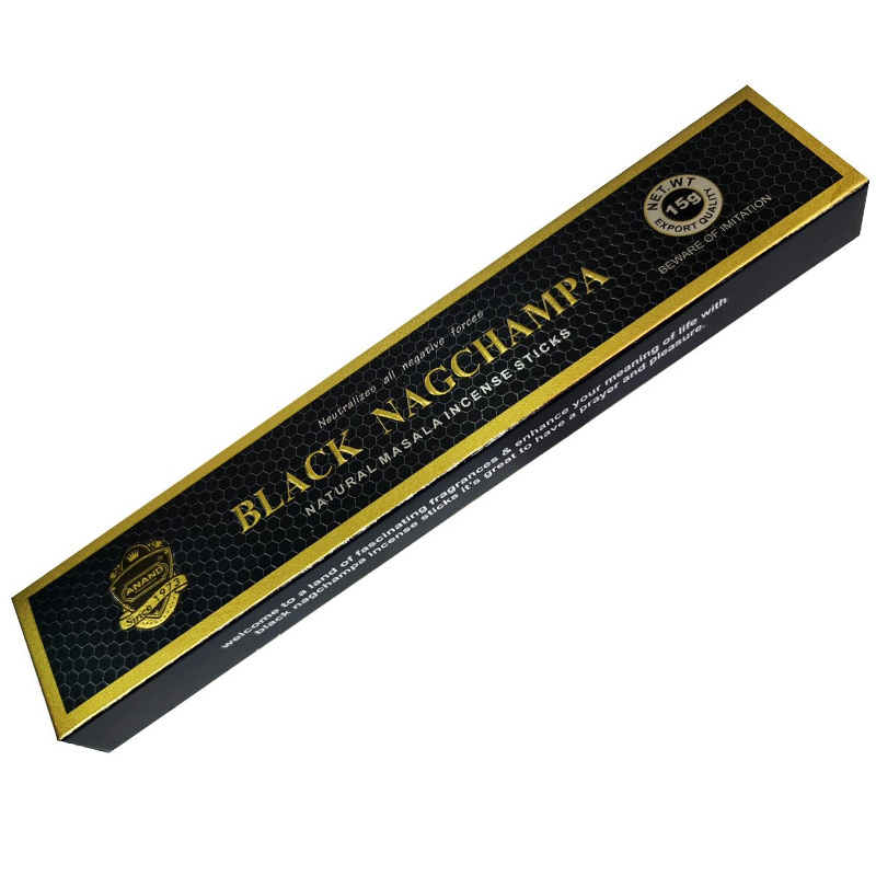 Более глубокие ноты благовония Black Nagchampa, чем у замечательной по качеству Unique Nagchampa, включают экзотический цветочный аромат цветка чампы и  пачули, сандалового дерева, мускуса и ваниль. Предлагаем погрузиться в мир благости и гармонии, самоосознания и единения с высшим Я.