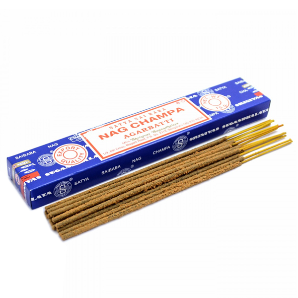 Благовония Nag Champa фирмы Satya завоевали свою большую популярность благодаря своему терпко сладкому, свежему аромату, с прохладным акцентом. Благовония сделаны из цветов и растительных компонентов перетёртых в пыль нанесённых на бамбуковую основу. В состав натурального благовония входят: пыльца цветов плюмерии и розы, специи и перетёртые в пыль ароматические травы и масала. Ароматы, сочетаясь друг с другом, создают неповторимую, гармоничную композицию сладко-медового аромата, но при этом не приторного, природной свежести и освежающей прохлады. Лёгкий и не навязчивый, аромат благовоний Наг Чампа, помогает снять нервное напряжение и расслабиться, а так же поднять настроение и вернуть вкус к жизни. Благовоние Наг Чампа помогает достигнуть внутренней гармонии, устраняет чувство тревоги и страха, способствует спокойному сну, помогает восстановить ауру, снимает стрессовое напряжение, борется с депрессией. Использование этих ароматических палочек способствует в защите от энергетических вампиров, применяют во время процесса медитации, способствуют раскрытию потенциала личности, снимают умственное напряжение во время интенсивных умственных нагрузках, помогают справиться с чувством апатии и лени.