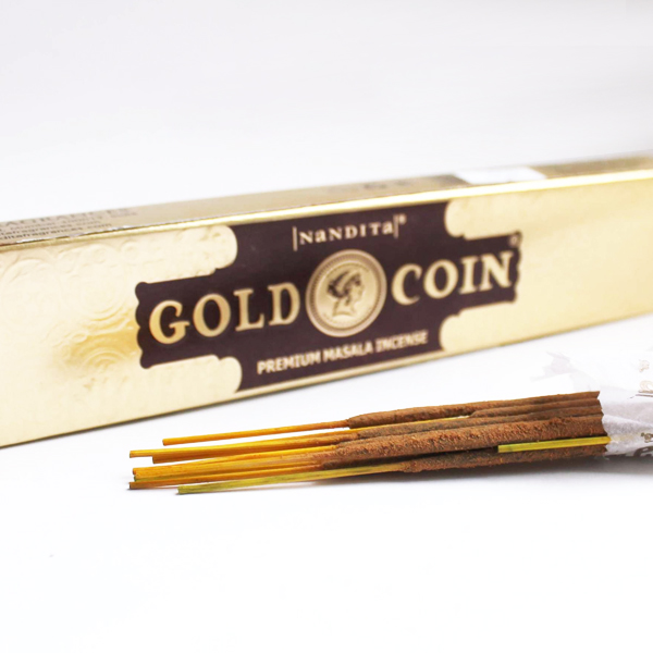 Благовоние Gold Coin (Золотая монета) от Nandita - настоящие денежные благовония, изготовленные по оригинальному рецепту, в котором смешаны цветы и травы, привлекающие денежную удачу.