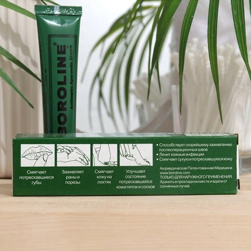 Аюрведический крем-антисептик Боролайн – это находка для людей, страдающих от сухости кожи. Этот крем помогает размягчить сухую потрескавшуюся на локтях кожу, отлично справляется с трещинами на пятках, не дает губам трескаться и высыхать в ветреную погоду, а кутикула ногтей становятся гораздо мягче. Крем также способен затянуть небольшие порезы, садины.