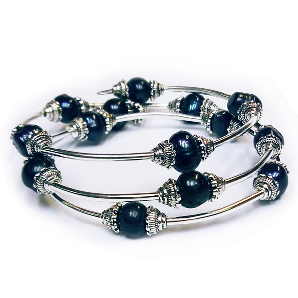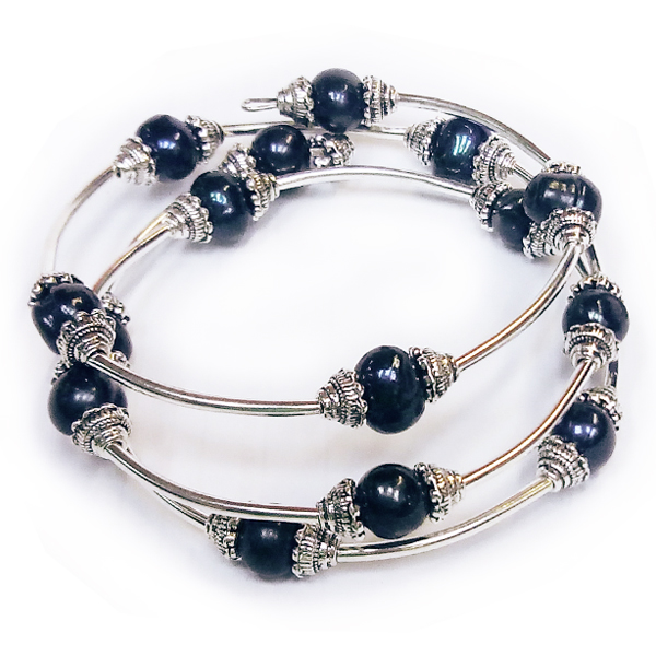 браслет с чёрным жемчугом на проволоке - доставка по всей России
