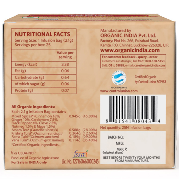 Чай органический из Тулси с Масалой Organic India, 25 пакетиков - купить на официальном сайте