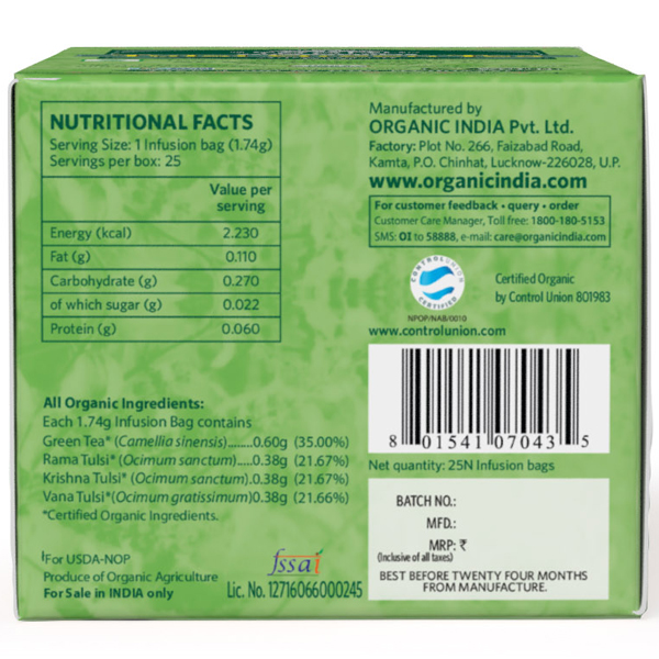 Чай органический из Тулси зелёный чай Organic India, 25 пакетиков - купить на официальном сайте