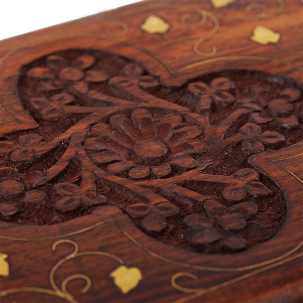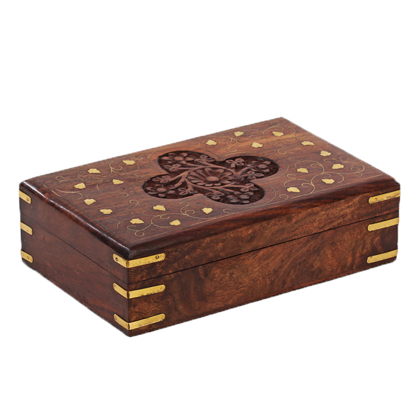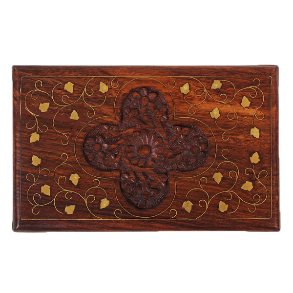 Купить деревянную резную шкатулку с инкрустацией из латуни Крестоцвет, 20х13 см