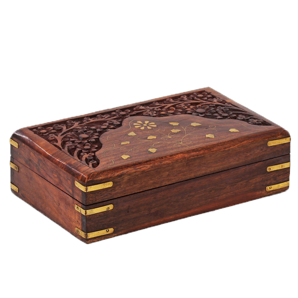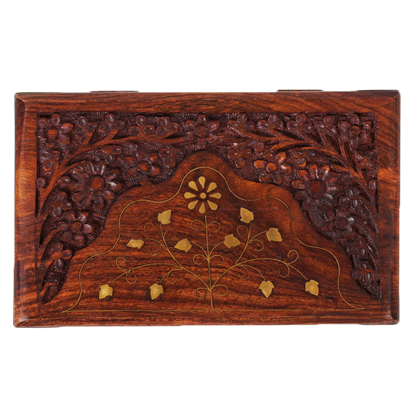 Купить деревянную резную шкатулку с инкрустацией из латуни Магия Цветов, 20х13 см