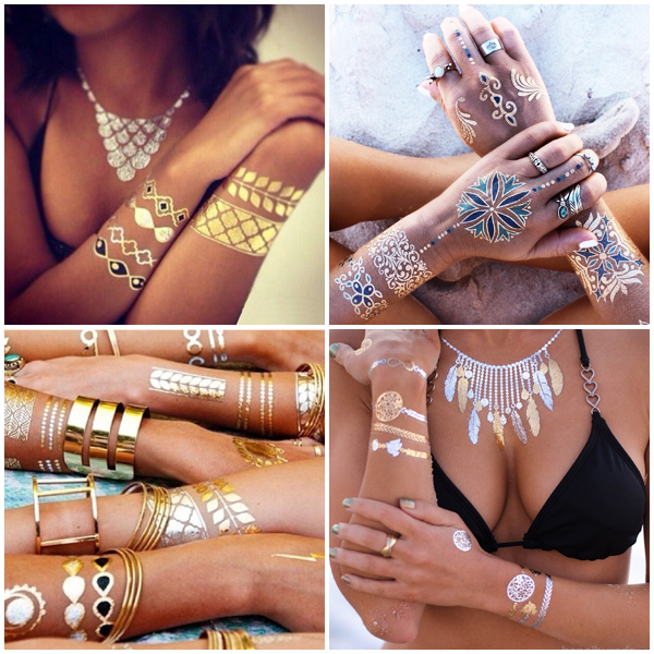 Золотые флэш тату, как аксессуар, очень красиво смотрятся на загорелой коже, и если вы используете их при походе на пляж, поездке на море или просто во время посещения бассейна, ваш образ, несомненно, станет более выразительным и привлекательным.