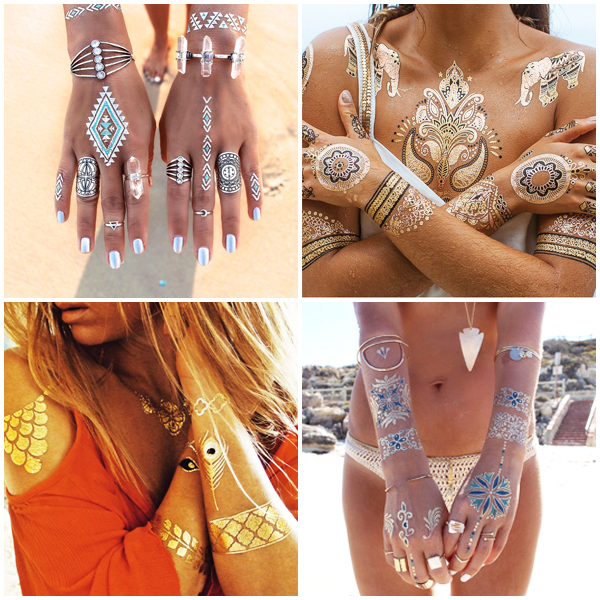 Золотые флэш тату, как аксессуар, очень красиво смотрятся на загорелой коже, и если вы используете их при походе на пляж, поездке на море или просто во время посещения бассейна, ваш образ, несомненно, станет более выразительным и привлекательным.