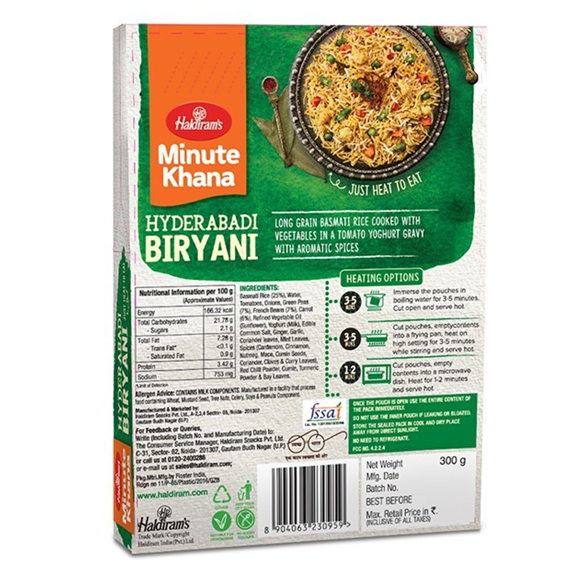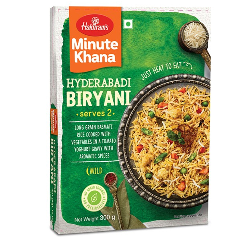Готовое к употреблению блюдо Хайдерабади Бирьяни Халдирамс (Hyderabadi Biryani Haldiram's). Хайдарабадское бирьяни одно из самых известных бирьяни в Индии, некоторые говорят, что бирьяни является синонимом Хайдарабада. Существуют различные рецепты приготовления хайдерабадского бирьяни, но основным является правило, что его готовят на медленном огне для получения ароматного вкуса.