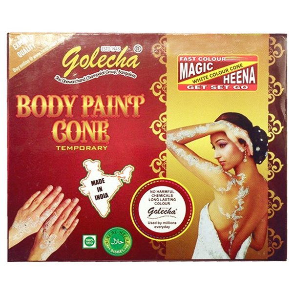 Купить "белую хну" для мехенди (глиттер) Golecha в конусах по 25 грамм