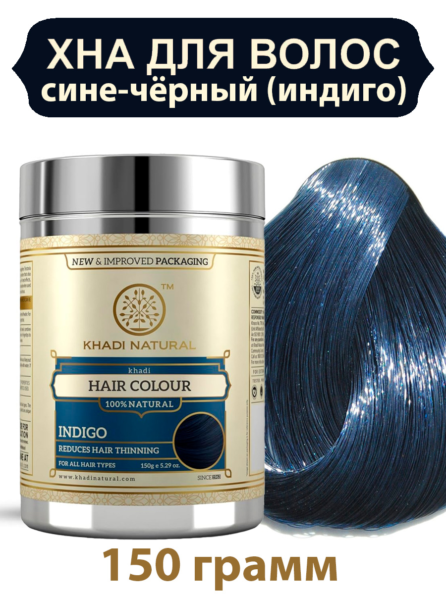 Купить краску для волос хна Кхади цвет Индиго (Сине-Чёрный), 150 грамм