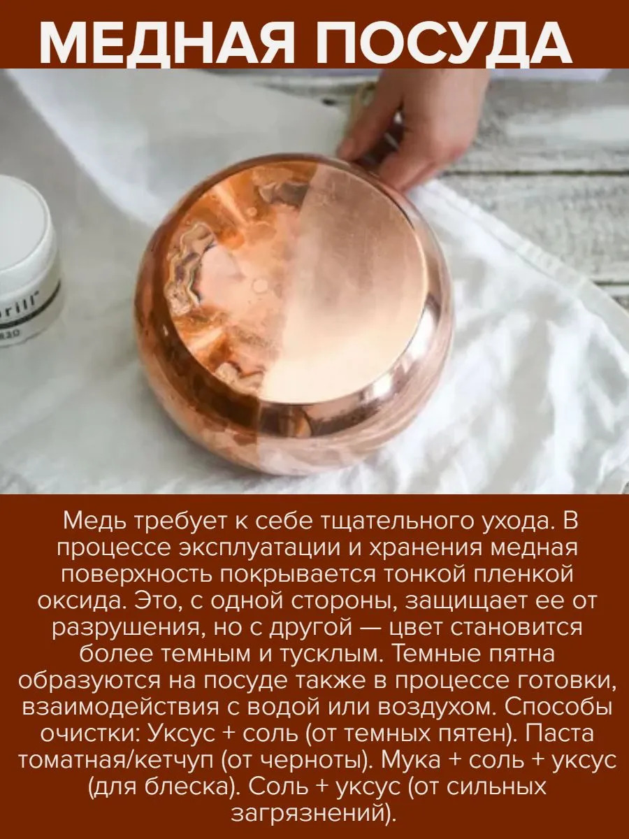 Медь - это природное вещество, которое склонно к потемнению в результате окисления. Поэтому необходимо регулярно очищать медную чашку. Для этого в чашку добавляют по одной чайной ложке лимонного сока и соли, перемешивают и чистят губкой или тряпкой. Таким же образом можно очистить и внешнюю поверхность чашки. Затем снова ополосните чашку водой. Этот способ очистки следует повторять регулярно, чтобы предотвратить коррозию медной чашки. Не подходит для мытья в посудомоечной машине.