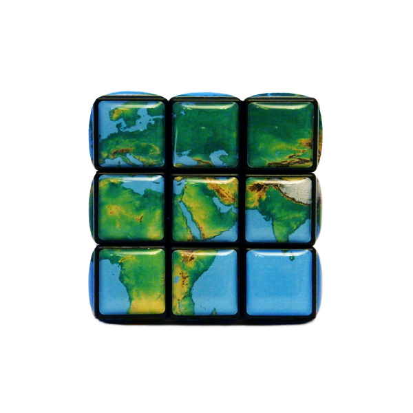 Все моря и океаны, горы, реки, полюса и континенты, всё-всё располагается на шести сторонах этой необычной головоломки - кубик Рубика в виде земного шара!