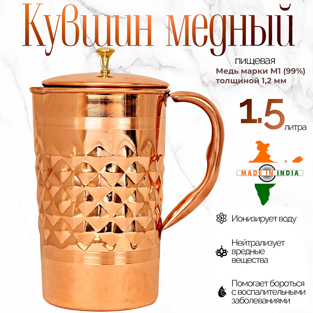 кувшин медный Даймонд для настаивания воды 1,5 литра - доставка по всей России