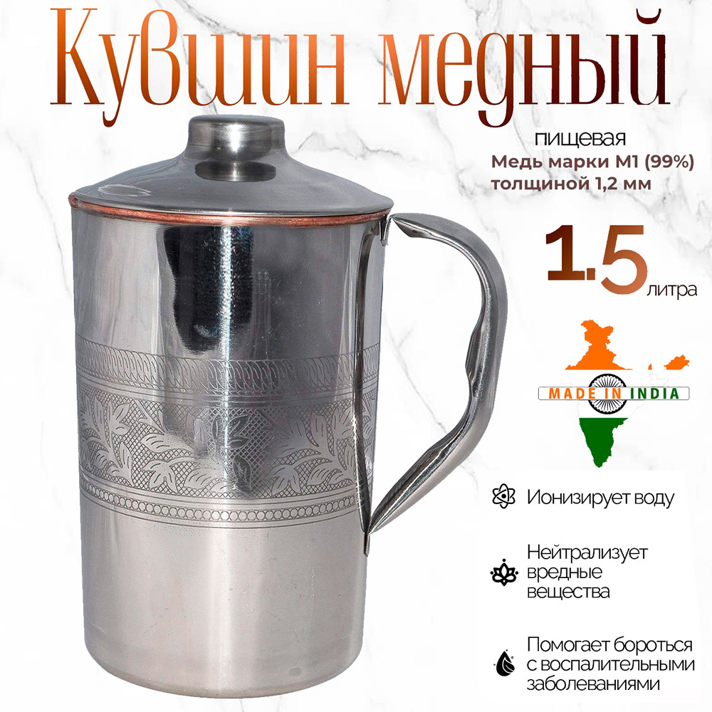 Описание кувшин медный с гравировкой в стальномкорпусе 1,5 литра