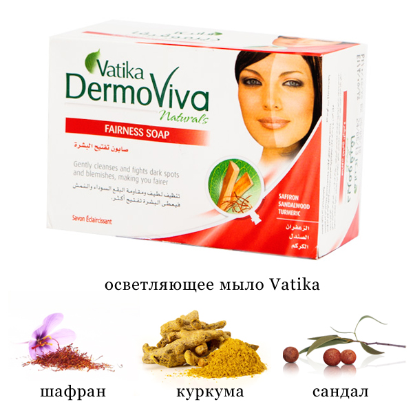Окружающая среда оказывает негативное воздействие на нашу кожу – это и ультрафиолет солнечных лучей, и не всегда благоприятная экологическая атмосфера, и использование воды содержащей хлор и химических препаратов. Всё это делает кожу грубой и потемневшей. Мыло Ватика Дермовива "Осветляющее" способно справиться с этим стрессом для кожи. Оно нежно очищает, устраняет тёмные пятна и дефекты проблемной кожи, делая кожу здоровой и чистой. И кроме этого оно способствует предотвращению видимых признаков старения. Это мыло подходит для применения строгими вегетарианцами – оно не содержит животных жиров.