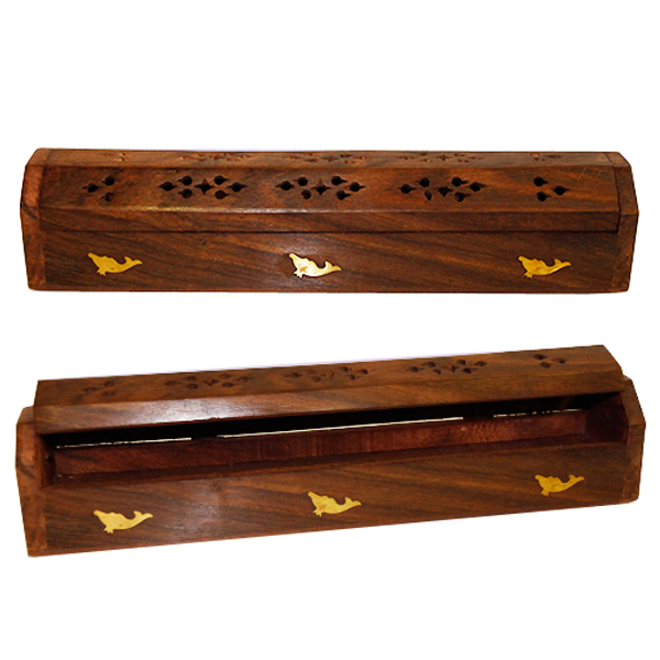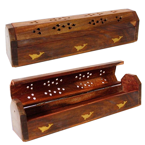 Мы предлагаем купить шкатулку для благовоний, которые сделаны руками индийских мастеров и красиво инкрустированные латунью вдоль обеих сторон. Через отверстия в крышке будет просачиваться дым, и создавать непередаваемые волшебные узоры. Внутри есть две подставки под ароматические конусы и два отверстия для ароматических палочек. Также существует тайник для хранения аромапалочек. Является отличным подарком вместе с парой-тройкой упаковок палочек или конусов.