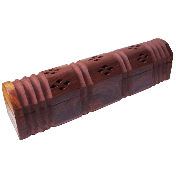 Мы предлагаем купить шкатулку для благовоний, которая сделана руками индийских мастеров и красиво инкрустирована латунью вдоль обеих сторон. Через отверстия в крышке будет просачиваться дым, и создавать непередаваемые волшебные узоры. Внутри есть две подставки под ароматические конусы и два отверстия для ароматических палочек. Также существует тайник для хранения аромапалочек. Является отличным подарком вместе с парой-тройкой упаковок палочек или конусов. Отлично впишется практически в любой интерьер и, вместе с благовониями, создаст гармоничную атмосферу.