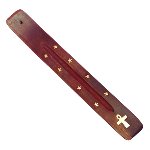 Деревянная подставка для палочек благовоний "лыжа" с инкрустацией в виде египетского символа жизни Анх и звёзд.
