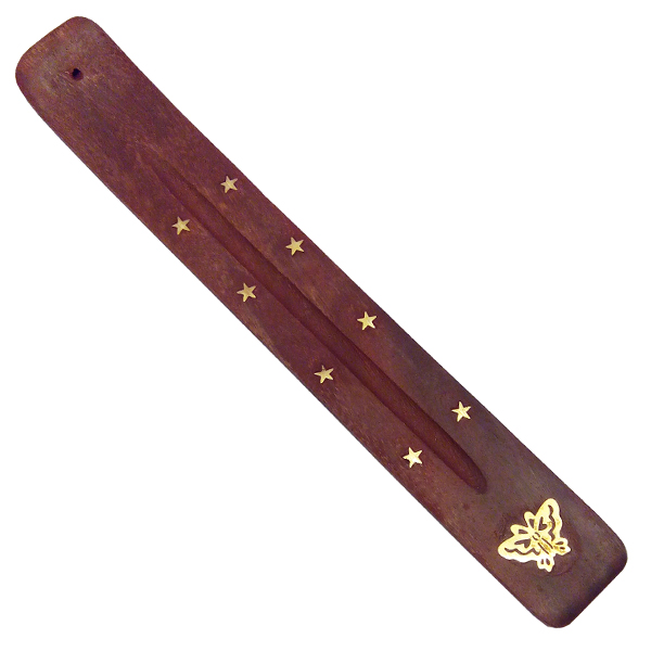 Деревянная подставка для палочек благовоний "лыжа" с инкрустацией в виде бабочки и звёзд.