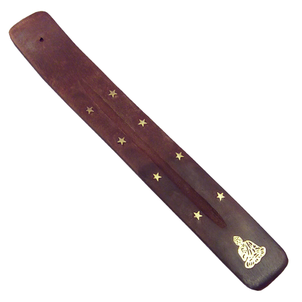 Деревянная подставка для палочек благовоний "лыжа" с узором из латуни в виде Будды.