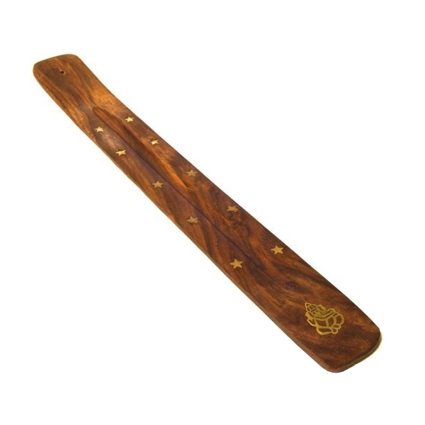 Деревянная подставка для палочек благовоний "лыжа" с инкрустацией в виде индийского божества Ганеша и звёзд.