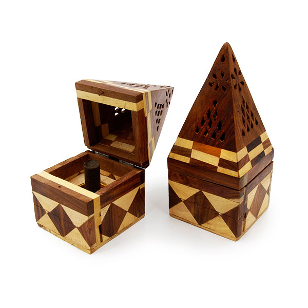 Подставка-башня для благовоний - это отличный подарок для любителей восточных ароматов. Сделана из тикового дерева в виде резной пирамидки. В ней можно хранить конусные безосновные благовония, для этого есть специальный ящичек. Так же пирамидку можно использовать в качестве подставки для возжигания благовоний. Из прорезей в крышке струится дым, что выглядит очень эффектно. Дерево подставки пропитывается благовонным ароматом, и еще долго будет наполнять ваше помещение благоуханиями.