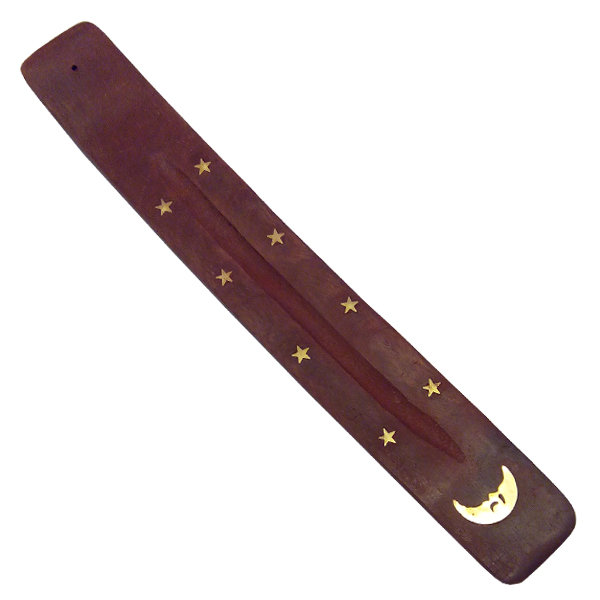 Деревянная подставка для палочек благовоний "лыжа" с инкрустацией в виде луны и звёзд.