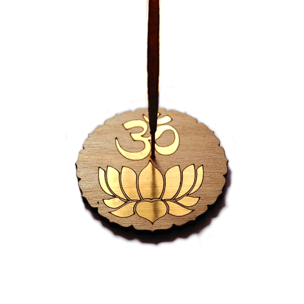 Купить подставку для благовоний "Ом и лотос" из дерева с латунной вставкой