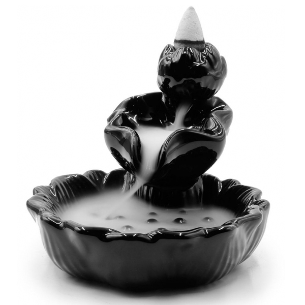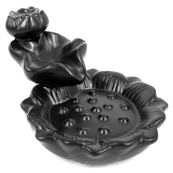 Подставки для стелющихся благовоний весьма разнообразны и креативны, ниспадающий тихим водопадом дым выглядит просто потрясающе и контрастирует с блестящей тёмной глазурью.