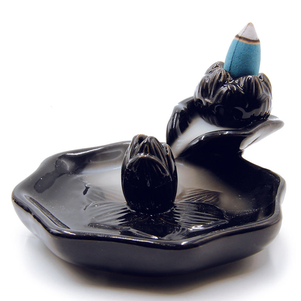 Подставки для стелющихся благовоний весьма разнообразны и креативны, ниспадающий тихим водопадом дым выглядит просто потрясающе и контрастирует с блестящей тёмной глазурью.