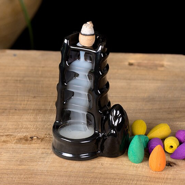 Конусы благовоний с обратным потоком - это конусы специальной конструкции, создающие более густой дым, который каскадами опускается вниз, а не поднимается вверх, как от обычных ароматических конусов.