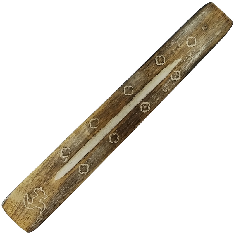 Деревянная подставка для палочек благовоний "лыжа" с инкрустацией в виде знака Ом и звёзд.