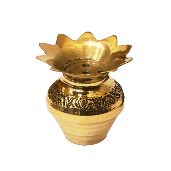 Латунная подставка для благовоний и ароматических конусов. В неё удобно втавлять ароматические палочки в процессе их воскуривания. Также в бутоне цветка удобно размещаются благовония в виде ароматических конусов.