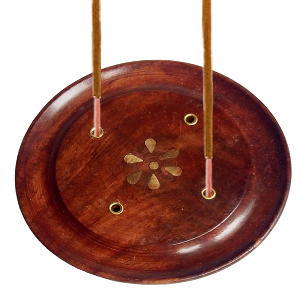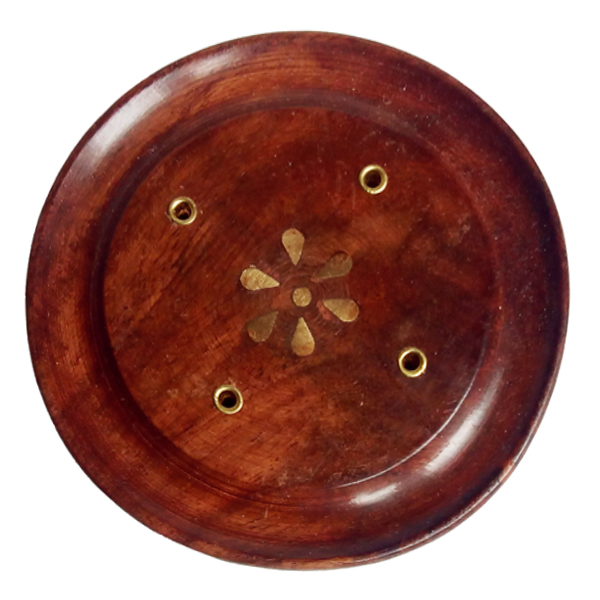 Деревянная подставка для палочек благовоний с узором из латуни в виде цветов.