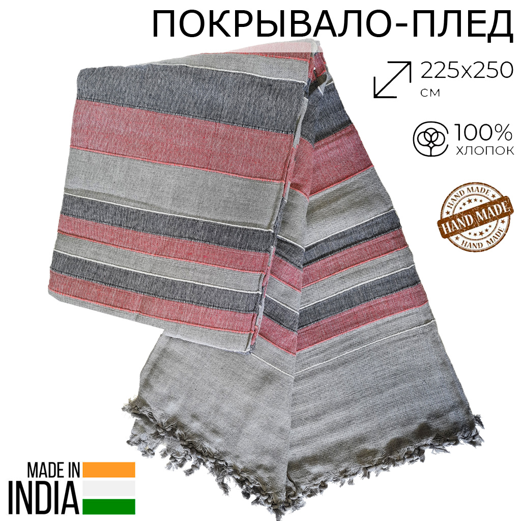 Самотканое покрывало изготовлено из натуральной хлопковой ткани в Индии, которое является одновременно и функциональным, и декоративным элементом.