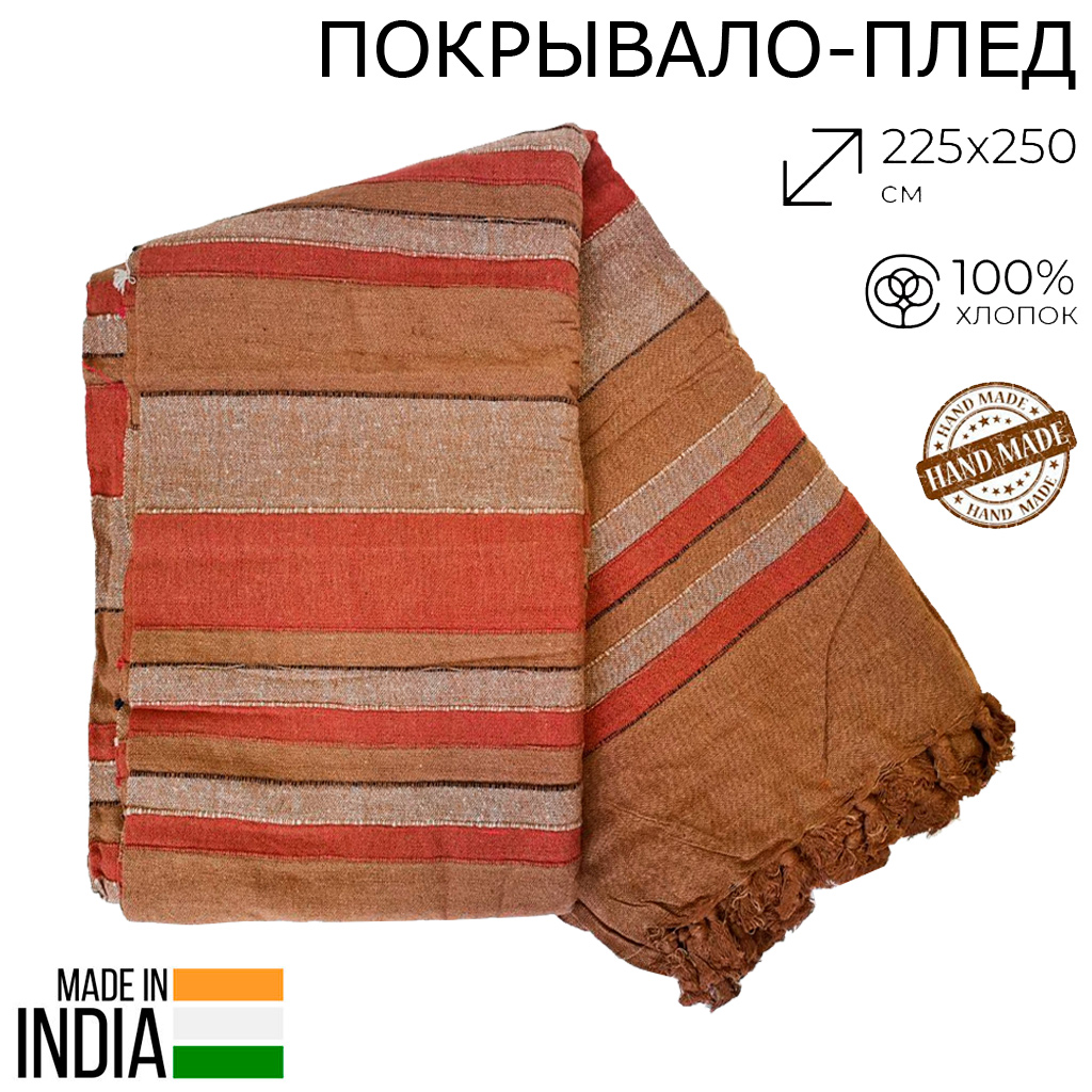 Самотканое покрывало изготовлено из натуральной хлопковой ткани в Индии, оно является одновременно и функциональным, и декоративным элементом.  Благодаря привлекательному дизайну и восточным мотивам покрывало станет настоящим украшением любого дома. Индийские покрывала ручной работы подарят прохладу летом, тепло зимой и принесут, сравнимый с солнечным светом, заряд позитивной энергии. Данный размер отлично подходит для использования как на кровати, так и на диване, обеспечивая тепло и комфорт во время отдыха и сна.