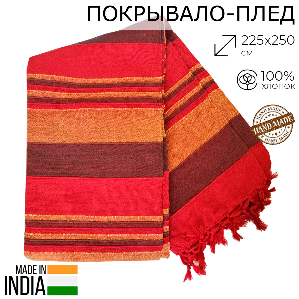 Самотканое покрывало изготовлено из натуральной хлопковой ткани в Индии, оно является одновременно и функциональным, и декоративным элементом.  Благодаря привлекательному дизайну и восточным мотивам покрывало станет настоящим украшением любого дома. Индийские покрывала ручной работы подарят прохладу летом, тепло зимой и принесут, сравнимый с солнечным светом, заряд позитивной энергии. Данный размер отлично подходит для использования как на кровати, так и на диване, обеспечивая тепло и комфорт во время отдыха и сна.