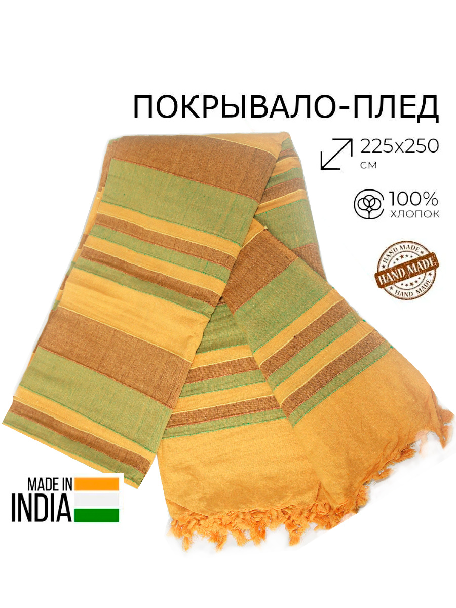 Самотканое покрывало изготовлено из натуральной хлопковой ткани в Индии, оно является одновременно и функциональным, и декоративным элементом.  Благодаря привлекательному дизайну и восточным мотивам покрывало станет настоящим украшением любого дома. Индийские покрывала ручной работы подарят прохладу летом, тепло зимой и принесут, сравнимый с солнечным светом, заряд позитивной энергии. Данный размер отлично подходит для использования как на кровати, так и на диване, обеспечивая тепло и комфорт во время отдыха и сна.