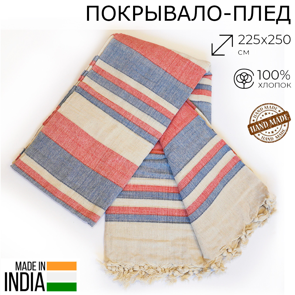 Самотканое покрывало изготовлено из натуральной хлопковой ткани в Индии, которое является одновременно и функциональным, и декоративным элементом.