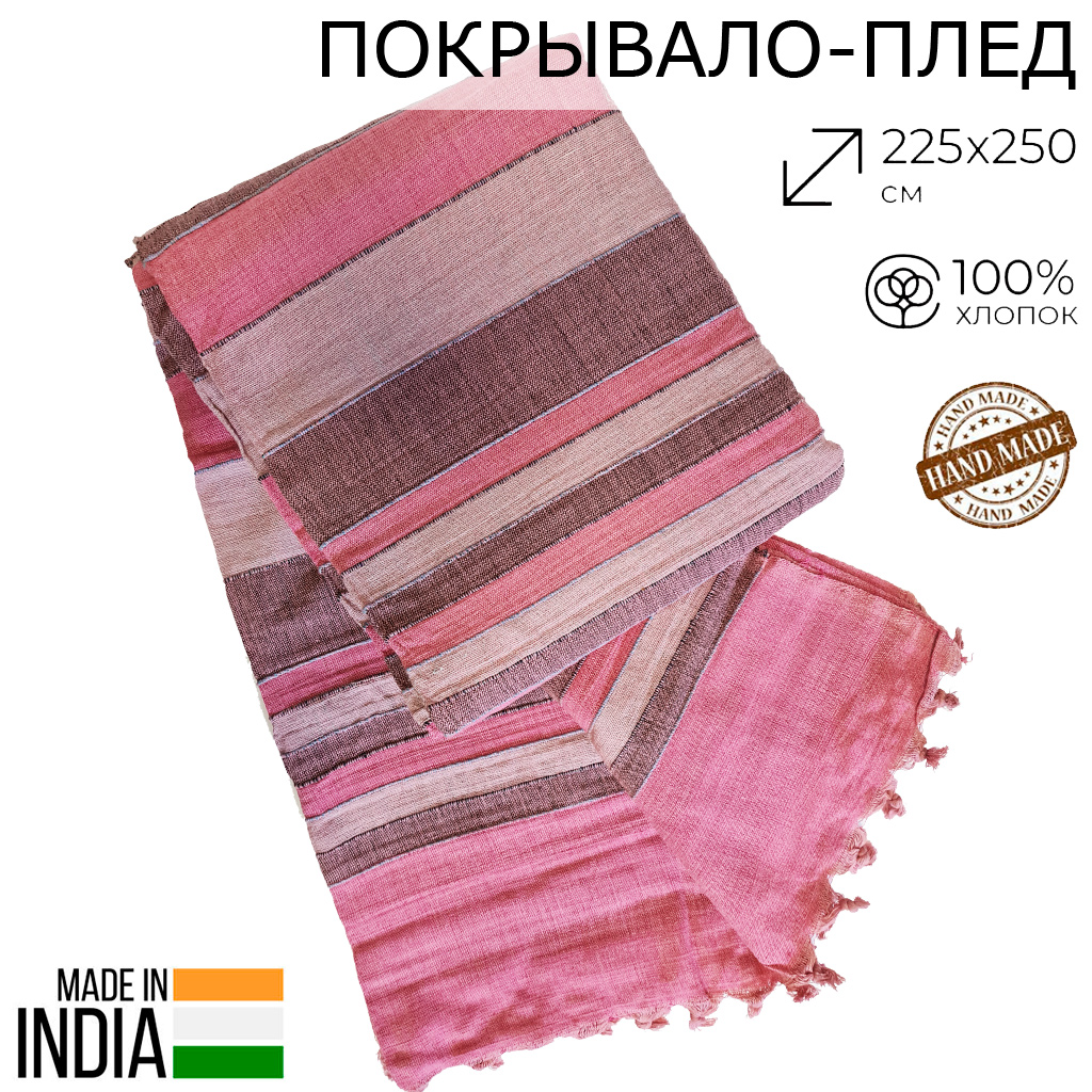Самотканое покрывало изготовлено из натуральной хлопковой ткани в Индии, которое является одновременно и функциональным, и декоративным элементом.