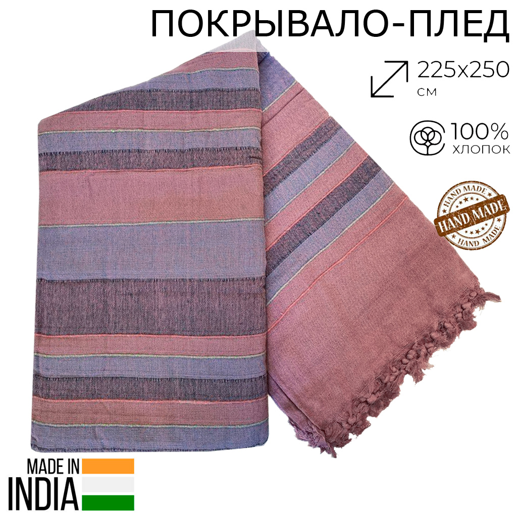 Самотканое покрывало изготовлено из натуральной хлопковой ткани в Индии, которое является одновременно и функциональным, и декоративным элементом.