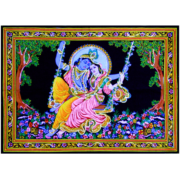 полотно Кришна и Радха на качелях - доставка по всей России