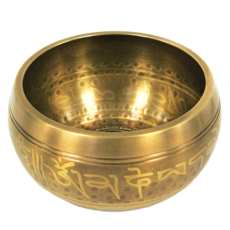 Купить тибетскую поющую литую чашу целительную с гравировкой, сплав 7-ти металлов, диаметром 14 см.