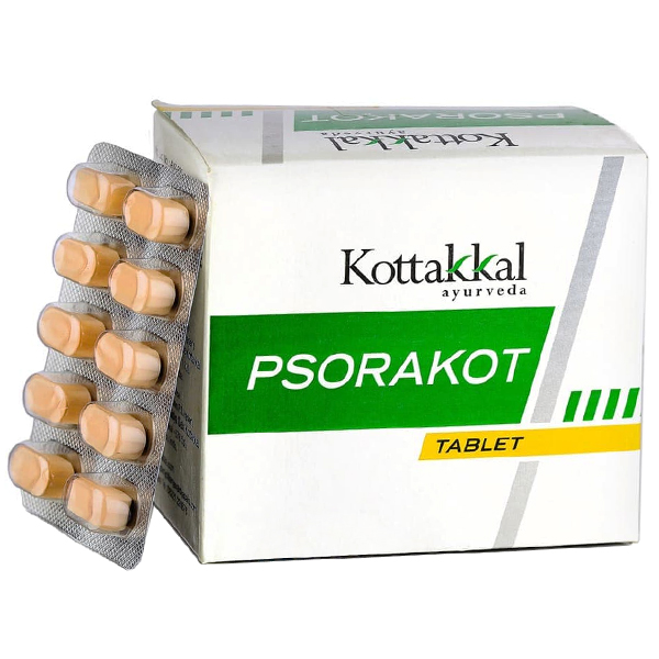 Псоракот Kottakkal AVS служит для борьбы с псориазом, экземой, чесоткой и другими заболеваниями кожи, вызванных дисбалансом Питта доша.
