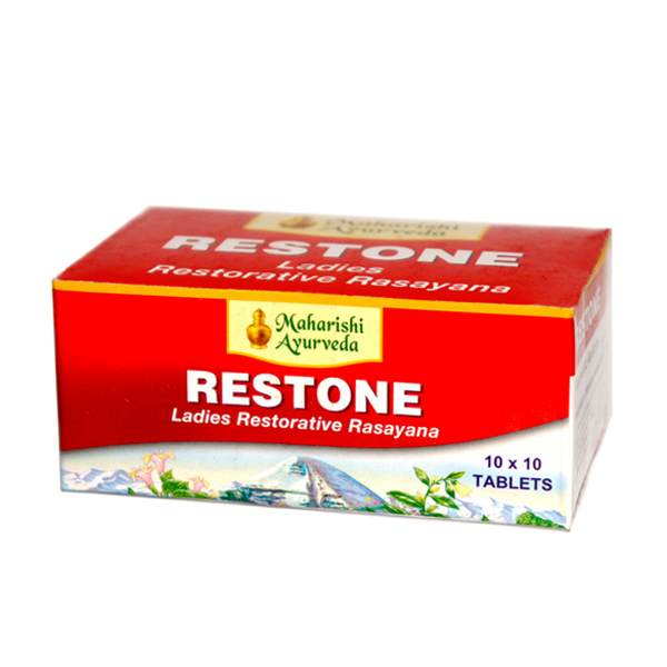 Restone Maharishi Ayurveda является Расаяной, то есть формулой рассчитанной на восстановление  физического тонуса тела, приведение в равновесие всех систем организма, а также на гармонизацию психического здоровья женщины (применение Рестон помогает преодолеть стрессовые ситуации, состояния беспокойства, депрессивные состояния и раздражительность). Также Рестон благоприятен женщинам любого возраста с момента полового созревания, до и после менопаузы, так как имеет регулирующее воздействие на менструальный цикл, корректирует эстрогенную недостаточность и улучшает функцию яичников, улучшает и восстанавливает ткани матки. Кроме этого Рестон имеет сильное антибактериальное и противоопухолевое действие на женскую мочеполовую систему, оказывает спазмолитический и противовоспалительный  эффект, устраняет боли. Применение Рестон помогает в прохождении регулярных месячных, во время родов и в период наступления менопаузы.
