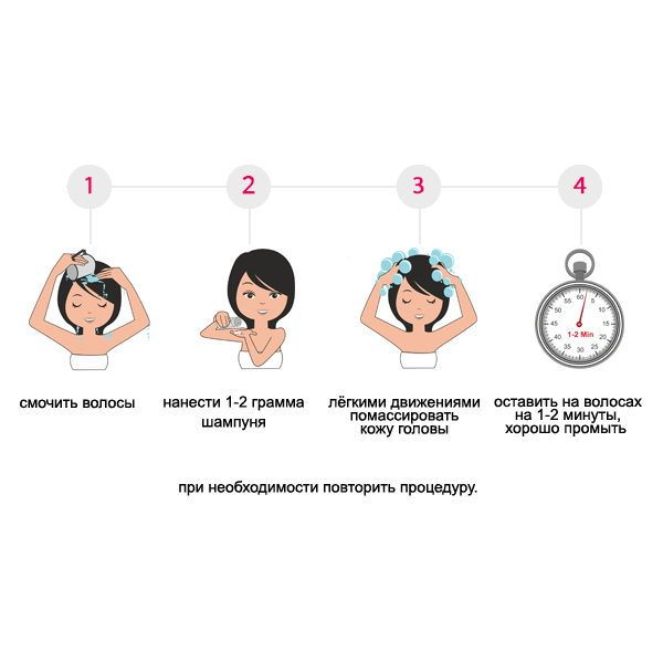- нанесите на мокрые волосы немного шампуня (1-2 гр) и лёгкими движениями массируйте кожу головы в течении 3-х минут;