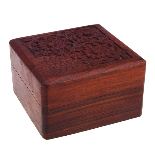 Отличный подарок, который запомнится надолго и прослужит много-много лет, храня личные богатства и секреты. Шкатулка сделана из дерева и украшена красивым растительным орнаментом, что подчёркивает её изысканность и рукотворность.  Идеально подходит для хранения украшений или индийских ароматических веществ.